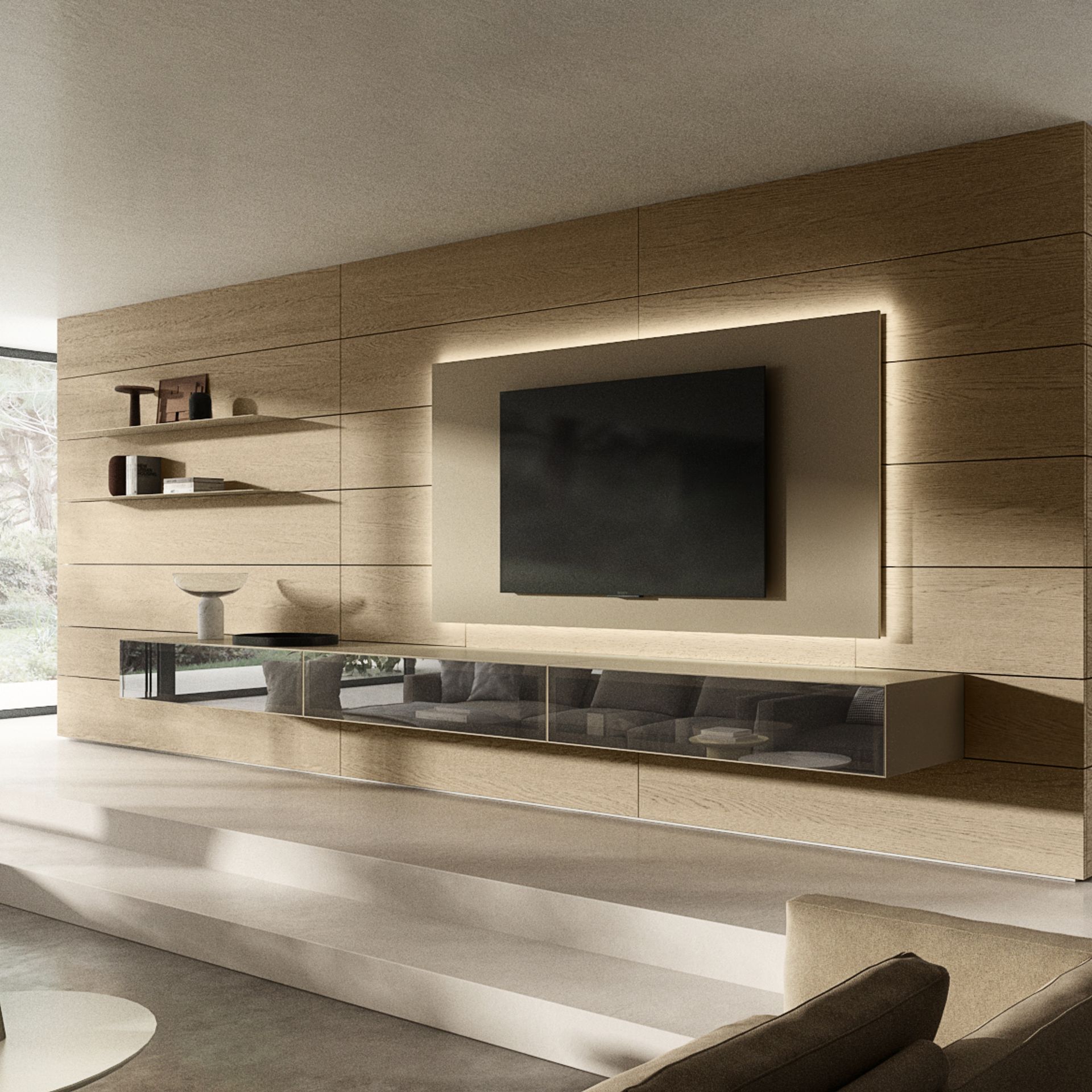 Kombiniert mit LEDs, Regalen oder TV-Elementen wird sie zum funktionalen Highlight.